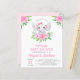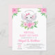 Personalise this Tropical Pink Floral Watercolor Girly Elephant Baby Virtual Baby Shower or Baby Sprinkle Invitations on white background with your message and details. This chic invitation includes blush pink flowers and modern botanical greenery with cute and elegant script typography for the special Mother to Be celebration.