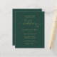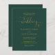 This elegant budget wedding invitation can be personalised with your celebration details in modern gold typography on an emerald background. Designed by Thisisnotme©