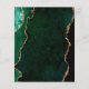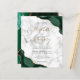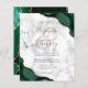 An emerald green watercolor agate design trimmed with faux gold glitter appears in two corners of this elegant design. Personalize it with the couple's names in gold-colored handwriting script over a large gray ampersand. Add the wedding details in black copperplate and italic fonts on a gray and white marble background. The reverse side features a matching green and gold agate design.
