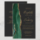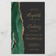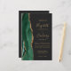 The left-hand edge of this elegant modern wedding invitation features an emerald green watercolor agate border trimmed with faux gold glitter. The customisable text combines gold-coloured handwriting, copperplate and italic fonts on an off-black background. Add additional details on the back, along with a QR code to help your guests visit your wedding website.
