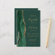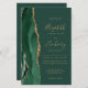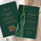 The left-hand edge of this elegant modern wedding invitation features an emerald green watercolor agate border trimmed with faux gold glitter. The customisable text combines gold-coloured handwriting, copperplate and italic fonts on an emerald green background. Add additional details on the back, along with a QR code to help your guests visit your wedding website.