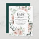 Budget Dusty Pink, Dusty Rose, Emerald Green, Sage Green Floral Roses and Eucalyptus Botanical Greenery Watercolor Spring or Summer Baby Shower Invitations - includes beautiful and elegant script typography with modern botanical flowers and greenery for the special Mother to Be celebration for a Baby Boy or Baby Girl new arrival.