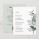 Budget All in One with QR Code Elegant Watercolor Eucalyptus Wedding Invitation... Our UPDATED affordable double-sided botanical wedding invitation features an elegant watercolor eucalyptus branch in rustic sage and dusty green shades setting off the invitation text beside it. The light sage green back of the invitation contains all of the details you would typically see on separate cards within the wedding packet. This modern style all-in-one wedding invitation was designed to be both elegant and budget conscious... not to mention time-saving. Included on the back is a QR code graphic template you can REPLACE instantly with YOUR OWN CODE by entering your wedding website URL right on the personalisation template. All example text can be easily revised with your own information on the same template. PLEASE NOTE: "Budget" card paper is not quite the same as the traditional flat card invitations. Our budget cards are 4.5 x 5.6 inches made of semi-gloss 110 lb paper compared to traditional wedding invitation flat cards at 5 x 7 inches in matte paper at 120 lb weight. Also, the budget cards do not automatically come with envelopes, as do the traditional invitation cards, but you can purchase them on the same page at checkout if you wish. This eucalyptus design is also available on a traditional 5x7 wedding invitation card as well as many other matching products.