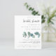 Eucalyptus Bridal Shower Tea Invitation. A budget price SMALLER 4.5” x 5.6” alternative. Available in a SEMI-GLOSS 110 lb CARD STOCK which is the default option (thicker for invitations), OR a SATIN FINISH 80 lb THINNER PAPER STOCK (ideal for enclosures). Envelopes are an optional extra and are slightly larger than the card size. Modern minimalist style with a single branch of teal blue eucalyptus leaves across the page from the left hand side. Bridal Shower is set in a modern handwriting style and is placed above the leaves along with your names, with the other details beneath. Easily personalise the details to your own. A coordinating turquoise blue background is on the reverse. You can change text and background colours to any of your choice to match your wedding colour theme.
