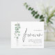 A value for money BUDGET alternative on a smaller size 4.5 x 5.6” semi-gloss 110lbs weight, which is of similar thickness to a postcard (however is not suitable to use as a postcard.). PLEASE NOTE there is ONE invite per sheet. Eucalyptus We Decided on Forever Wedding Save The Date. A stylish set typography in black for the word Forever complementing the rest of the text which you can easily personalise, with elegant Watercolor eucalyptus leaves to the left. On the back, a coordinating green.