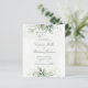 Beautiful affordable Save the date card featuring hand-painted watercolor eucalyptus and gold leaves with calligraphy script.