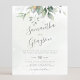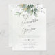 Beautiful wedding invitation featuring watercolor eucalyptus and gold leaves. Perfect choice for spring and summer weddings.