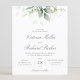 Beautiful wedding invitation featuring watercolor eucalyptus and gold leaves.