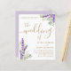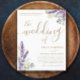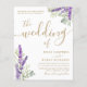 This is a modern and elegant 'the wedding of' calligraphy wedding invitation in gold on a white background with the addition of sage green eucalyptus and purple lavender. Easy to customize the text to create something really unique.