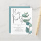 Budget Eucalyptus Leaf Hen Party Invitation. A budget price SMALLER 4.5” x 5.6” alternative. Available in a SEMI-GLOSS 110 lb CARD STOCK which is the default option (thicker for invitations), OR a SATIN FINISH 80 lb THINNER PAPER STOCK (ideal for enclosures). Envelopes are an optional extra and are slightly larger than the card size. This modern design for your Hen Party Invitees has set handwriting style typography for The heading at the top and elegant turquoise blue eucalyptus leaves running up from the bottom right. Easily personalise with your details to the left. A coordinating turquoise is on the back which you can change to another colour if you wish via the Customise Further option.