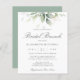 Beautiful bridal brunch invitation featuring watercolor eucalyptus and gold leaves.