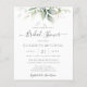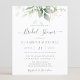 Beautiful bridal shower invitation featuring watercolor eucalyptus and gold leaves.