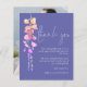 A value for money BUDGET alternative on a smaller size 4.5 x 5.6” semi-gloss 110lbs weight, which is of similar thickness to a postcard (however is not suitable to use as a postcard.). PLEASE NOTE there is ONE invite per sheet. Budget Eucalyptus Periwinkle Photo Thank You. Modern lilac blue with watercolor foliage in shades of peach, coral and pink flowing down on the left hand side and text to the right. A set handwritten style script for Thank You and the rest of the text you can easily personalise. Replace the sample photo on the back with your own favourite from you wedding day.