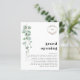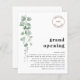 Budget Eucalyptus QR Code Store Grand Opening Logo. A great value SMALLER 4.5” x 5.6” alternative. Available in a SEMI GLOSS 110 lb CARD STOCK which is the default option (recommended for invitations, similar to the thickness of a postcard), OR a SATIN FINISH 80 lb THINNER PAPER STOCK (ideal for enclosures). Your logo is at the top and easily personalise the typography with your details on both sides. Simply change the sample image with your own logo, and on the back replace the sample QR code with your own to your website page. Modern watercolor eucalyptus leaves flow down from the left.