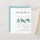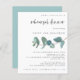 Eucalyptus Rehearsal Dinner invitation. A budget price SMALLER 4.5” x 5.6” alternative. Available in a SEMI-GLOSS 110 lb CARD STOCK which is the default option (thicker for invitations), OR a SATIN FINISH 80 lb THINNER PAPER STOCK (ideal for enclosures). Envelopes are an optional extra and are slightly larger than the card size. Modern minimalist style with a single branch of teal blue eucalyptus leaves across the page from the left hand side. Rehearsal Dinner is set in a modern handwriting style and is placed above the leaves along with your names, with the other details beneath. Easily personalise the details to your own. A coordinating turquoise blue background is on the reverse. You can change text and background colours to any of your choice to match your wedding colour theme.