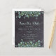 Save The Date! Announce your wedding to friends and family with these budget rustic chalkboard and eucalyptus save the date cards. These budget wedding invitation postcards need to be mailed as oversized postcards so may incur standard postage fees but they don't need an envelope or a return address label. Personalise with names, wedding date, location. Add any other information on the back. These unique greenery wedding save the cards will make a lasting impression, your guests will make sure to save the date! COPYRIGHT © 2020 Judy Burrows, Black Dog Art - All Rights Reserved. Budget Eucalyptus Rustic Save The Date Postcard