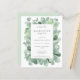 A budget price SMALLER 4.5” x 5.6” alternative. Available in a SEMI-GLOSS 110 lb CARD STOCK which is the default option (thicker for invitations), OR a SATIN FINISH 80 lb THINNER PAPER STOCK (ideal for enclosures). Envelopes are an optional extra and are slightly larger than the card size. A design with a border of lush eucalyptus leaves around the text which is easy to personalise. A background in soft sage green is on the back which you can change to another colour if you wish via the customise further option.