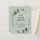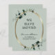 Budget Eucalyptus Gold Metallic Sage New Address Announcement... Our budget sage green botanical new address card features a faux gold metallic oval frame embellished with emerald-hued eucalyptus leaves creating a natural looking border for your moving announcement text within. The back of the card contains all of the new details your family and friends will need to stay in touch. The example text on front and back can be easily revised on the personalisation template. Please note: Budget cards do not automatically come with envelopes, but you can purchase them on the same page as you're checking out.