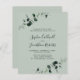 Budget Eucalyptus Greenery Sage QR Code Elegant Script Typography Wedding Reception Invitation... Our affordable sage green botanical wedding reception invitation features elegant eucalyptus branches with sage and emerald-hued leaves creating a natural looking border for the invitation text within. The sage back of the card contains your wedding website URL and an example QR code graphic you can easily replace with your own information at the same time you are revising the text. All example text can be easily revised with your own details on the personalisation template. This modern style reception invitation was designed to be both elegant and time-saving, created especially for busy brides-to-be.