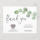 Eucalyptus Leaf Script Photo QR Code Thank You. A budget price SMALLER 4.5” x 5.6” alternative. Available in a SEMI GLOSS 110 lb CARD STOCK which is the default option (recommended for invitations, similar to the thickness of a postcard), OR a SATIN FINISH 80 lb THINNER PAPER STOCK (ideal for enclosures). Envelopes are an optional extra and are slightly larger than the card size. Add a QR code to your wedding thank you's whereby guests can view your online wedding photo gallery. An elegant gold branch of green eucalyptus leaves flows partially across from the right hand side, with set typography Thank You in a modern script to the left hand side. On the back, swap in your favourite photo from your day (of landscape orientation). The rest of the text on the front you can easily personalise to your own words. You may also be interested in our handy individual guest name and address sticker sheets in this collection to assist with your wedding mailings.