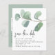 Watercolor Eucalyptus Script QR Code Save The Date. A budget price SMALLER 4.5” x 5.6” alternative. Available in a SEMI-GLOSS 110 lb CARD STOCK which is the default option (thicker for invitations), OR a SATIN FINISH 80 lb THINNER PAPER STOCK (ideal for enclosures). Add your QR code to your wedding website on the back by replacing the QR code on the sample. . You can create QR codes for free online. Simply search “QR code creator” and lots of options come up to create for free. A modern watercolor green eucalyptus design and informal set handwriting script for the header. The rest of the text you can easily personalise.