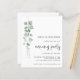A value for money BUDGET alternative on a smaller size 4.5 x 5.6” semi-gloss 110lbs weight, which is of similar thickness to a postcard (however is not suitable to use as a postcard.). PLEASE NOTE there is ONE invite per sheet. Budget Eucalyptus Script Wedding Evening Party. Minimalist botanical style to invite your evening wedding guests. A modern stylish set script for Evening Party and the rest of the text you can easily personalise. An elegant branch of watercolor eucalyptus leaves runs down the left hand side.