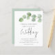 A value for money BUDGET alternative on a smaller size 4.5 x 5.6” semi-gloss 110lbs weight, which is of similar thickness to a postcard (however is not suitable to use as a postcard.). PLEASE NOTE there is ONE invite per sheet. BUDGET Eucalyptus Script Wedding Invitation. A set handwritten style script for Wedding and the rest of the text you can easily personalise. An elegant branch of watercolor green and a hint of gold eucalyptus leaves is at the top.