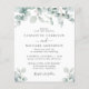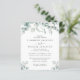 Elegant budget-friendly wedding invitation featuring watercolors of sage green eucalyptus greenery, stylish script and soft grey typography.