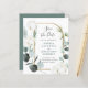 Budget Boho Save the Date Eucalyptus Cotton Winter Wedding Announcement... Our affordable winter wedding Save the Date features boho soft cotton bolls entwined with eucalyptus branches on a gold geometric frame bordering your invitation text. With their beautiful light and dark dusty green watercolor leaves, these trendy chic eucalyptus bouquets create an attractive illustration for an late fall or winter wedding. All example text on front – and back – of the card can be easily revised on the personalisation template.
