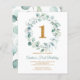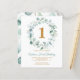 Design features beautiful watercolor floral elements in shades of eucalyptus greenery wreath and leaf elements.