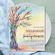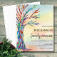 It features a family tree in the colours of the rainbow on a watercolor background and space for you to customise with your family name and your details.