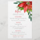 Festive Wedding Poinsettia Foliage Menu A budget price size 5.5” x 8.5”, on an elegant 110 lb LINEN stock – for a luxury feel at great value, this is perfect for menus, as well as invitations and programs etc. This budget size alternative is also available in other paper choices. The SEMI-GLOSS 110 lb card stock is about the same thickness as a postcard, so also works well for invitations. The FELT 100 lbs paper is buff coloured, NOT white, so adds a rustic touch. The MATTE 80lbs paper stock is bright white, for crisp printing, great for your menus and programs, whilst the SATIN 80lbs paper is thin and light, ideal for enclosures. PLEASE NOTE THE OPTIONAL ENVELOPES ARE A LITTLE BIGGER IN SIZE AT 6.75” x 9” approx. With Christmas weddings in mind, this elegant design has a beautiful large red poinsettia to the top right hand corner and stylish typography which is centred beneath and slightly offset to the left. Easily personalise the text to your own details which includes alternatives for your vegan options. A coordinating Christmassy Red is on the back. You can also change text styles and colours as well as the background colours via the customise further option if you wish.