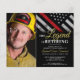 This design features a fireman's flag with black and white stripes, and a thin red line stripe as well. "The Legend is Retiring" text sits above all of the party details for the retiring firefighter, lieutenant, or chief. Customise this design even further with a photo of the retiring firefighter.