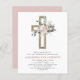 Budget Daughter's Dusty Rose Floral and Eucalyptus - Cross Botanical Sage Green Greenery Watercolor Religious First (1st) Holy Communion Invitations.
