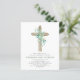 Budget Sage Green Girl's Eucalyptus and Cross Botanical Greenery Watercolor Religious First (1st) Holy Communion Invitations.