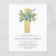 Budget Sage Green Floral Girl's Eucalyptus and Cross Botanical Greenery Watercolor Religious First (1st) Holy Communion Invitations.