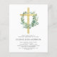 Budget Sage Green Floral Boy's Eucalyptus and Gold Cross Botanical Greenery Watercolor Religious First (1st) Holy Communion Invitations.