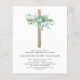 Budget Sage Green Girl's Eucalyptus and Cross Botanical Greenery Watercolor Religious First (1st) Holy Communion Invitations.