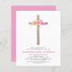 Budget Pastel Pink, Orange and Purple Floral Rose Flowers Cross Botanical Watercolor Religious First (1st) Holy Communion Invitations.
