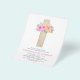 Budget Pastel Pink, Orange and Purple Floral Rose Flowers Cross Botanical Watercolor Religious First (1st) Holy Communion Invitations.