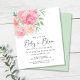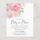 This pretty and stylish budget-friendly baby shower invitation features pink and coral watercolor florals and "Baby in Bloom" written in a stylish contemporary script.