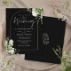 This budget elegant botanical greenery leaves wedding invitation can be personalised with your information in chic typography with your monogram initials on the reverse on a dusty black background. Designed by Thisisnotme©