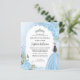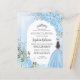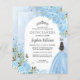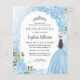 Floral Dusty Blue Silver Grey Princess Gown Dress Glitter Sparkle Tiara Crown Butterfly 15th Birthday Quinceanera Invitation