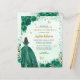 Floral Emerald Green Princess Gown Dress Glitter Sparkle Tiara Crown Butterfly 15th Birthday Quinceanera Invitation