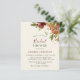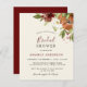 Budget Autumn Maroon Floral Bridal Shower Invitation features a top border of blooming burgundy marsala, dark orange flowers and white rose, with lush botanical greenery and foliage, rustic burgundy twigs on the ivory background. The reverse side of tis wedding invitation is maroon.