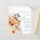 A smaller 4.5 x 5.6” invitation at a budget price on a semi-gloss 110lbs card similar in thickness to a postcard (although can’t be sent as a postcard). Floral Pumpkin Script Halloween Party White, A set handwritten script for Halloween Soirée and the rest of the text you can easily personalise. Fall coloured florals and pumpkin run down the left hand side and across the bottom and are also on the back,