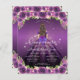 Floral Dark Purple Violet Lavender Princess Gown Dress Gold Glitter Sparkle 15th Birthday Quinceanera Invitation