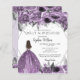 Budget Elegant Floral Silver Purple Sparkle Dress Sweet 16 Invitation
