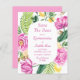 Budget Watercolor Floral Pink Peonies Tulips Quinceañera Save the Dates Announcements Invitations features a floral frame of pink tulips, pink peonies, lemon citrus with palm fronds and greenery with gold shimmer accents on a white background. Inside is your custom Quinceañera save the date information. Personalise by editing the text in the text boxes. Designed for you by Evco Studio www.zazzle.com/store/evcostudio