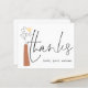 A budget price paper alternative, envelopes are an optional extra. Modern minimalist style to say thanks, with a simple flower in a vase and thanks in an informal handwritten style script running at the top and the name of your recipient beneath.